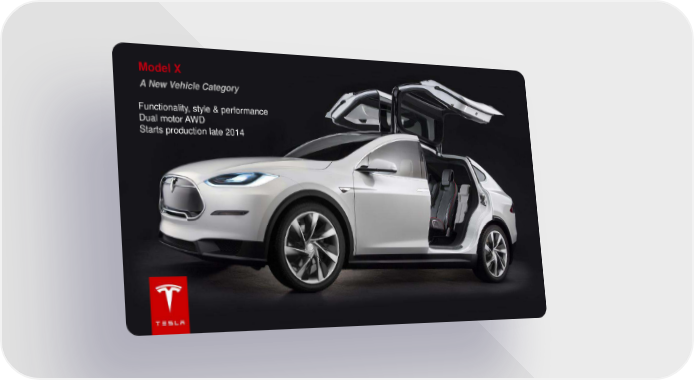 Model X A New Vehicle Category Functionality, style & performance Dual motor AWD Starts production late 2014 Tesla Page 22 Page 24