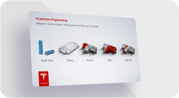 Powertrain Engineering Integration Value: A system that is greater than the sum of its parts Small Cells Battery Inverter Motor Gear Box Tesla Page 27 Page 29