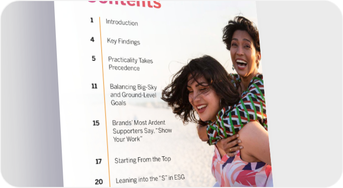 II Contents Introduction Key Findings 1 4 Practicality Takes Precedence 5 Balancing Big-Sky and Ground-Level Goals Brands’ Most Ardent Supporters Say, “Show Your Work” 11 15 Starting From the Top 17 Leaning into the “S” in ESG 20 The Transforming Power of Pressure 24