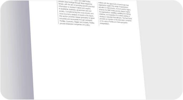 May 2023 Future of Jobs Report 2023 User Guide Economy, Industry, Region and Skill Profiles Economy, Industry, Region and Skill Profiles makers with the opportunity to benchmark their present data findings through these respective organization against the range of expectations lenses, with the aim of providing specific practical prevalent in their industry, economy and/or region, information to decision-makers and experts whereas the Skill Profiles provide deeper insights in academia, business, government and civil for organizations’ reskilling, upskilling and training society. Complementing the cross-industry and initiatives, and inspiration for workers seeking to cross-economy analysis of results in the report, develop or describe their skill sets. The User Guide this section provides deeper granularity for given provides an overview of the information contained industries and economies through dedicated in the various Profiles and their appropriate Profiles. Economy, Region and Industry Profiles interpretation. provide interested companies and policy- Future of Jobs Report 2023 82