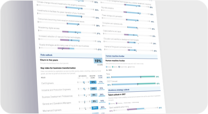 Industry Profile Global Employee (millions, ILO estimates) 1 / 2 Mining and Metals 9.1 Trend outlook Global trends and their impact on job creation Technologies and their impact on job creation Trends most most likely to drive industry transformation and their expected impact job creation, ordered by net Technologies most most likely to drive industry transformation and their expected impact job creation, ordered effect (share of organizations surveyed) by net effect (share of organizations surveyed) Job creator Job displacer Net effect Global net effect Job creator Job displacer Net effect Global net effect Broader application of Environmental, Social and Governance (ESG) standards Climate-change mitigation technology (Alternative Energy, Greenhouse gases … -100% +100% -100% +100% 69% 61% Supply chains becoming more localized Environmental management technologies (e.g. pollution abatement, recycling) -100% +100% -100% +100% 63% 59% Climate-change induced investments into adapting operations Big-data analytics -100% +100% -100% +100% 55% 52% Investments to facilitate the green transition of your business Power storage and generation -100% +100% -100% +100% 53% 46% Consumers becoming more vocal on environmental issues Encryption and cybersecurity -100% +100% -100% +100% 39% 40% Broadening digital access Digital platforms and apps -100% +100% -100% +100% 27% 23% Increased adoption of new and frontier technologies Education and workforce development technologies -100% +100% -100% +100% 11% 23% Supply shortages and/or rising cost of inputs for your business Internet of things and connected devices -100% +100% -100% +100% -21% 23% Role outlook Human-machine frontier Churn in five years Human-machine frontier 19% Five-year structural labour-force churn (percent) Tasks performed by humans and machines today and in 2027 (share of total) Global 23% Human Machine Industry Frontier Global Frontier Key roles for business transformation ALL TASKS Roles most selected by organizations surveyed (as either growing, stable or declining), ordered by net role growth, and their net growth and structural churn (percent) Now NET GROWTH INDUSTRY GLOBAL ROLES -50% 0 50% CHURN CHURN 66% 34% 2027 Forecast 19% 17% Civil Engineers 58% 42% 14% 15% Industrial and Production Engineers Workforce strategy outlook 8% 24% Business Development Professionals Talent outlook in 2027 Expected change in talent availability, development and retention in the next five years (share of organizations surveyed) 8% 14% General and Operations Managers Improving Worsening Global average Global average 26% 20% Mechanical Engineers Talent availability when hiring -100% +100% 43% 36% 13% 17% Assembly and Factory Workers Talent development of existing workforce -100% +100% 0% 79% 10% 24% Technical Specialists Talent retention of existing workforce 26% 19% Mechanics and Machinery Repairers -100% +100% 10% 55% 22% 19% Accountants and Auditors 24% 35% Administrative and Executive Secretaries Accounting, Bookkeeping and Payroll 54% 29% Clerks
