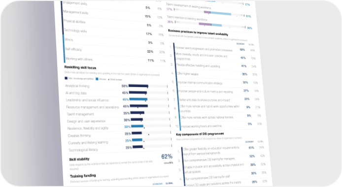 Economy Profile Working Age Population (Millions) / 2 Belgium 8.2 6kill outlook :orkIorce strateJ\ outlook Core sRills Talent outlooR in 6kills needed to perform well in key, stable roles within the company (share of organizations surveyed) (xpected change in talent availability, development and retention in the next ıve years (share of organizations surveyed) Skills, knowledge and abilities $ttitudes ,mproving :orsening Global average Global average 22 22 Talent availability when hiring ECONOMY G/2%$/ -100% +100% 52% 17% 22% Cognitive skills Talent development of existing workforce -100% +100% 17% 61% 5% Engagement skills Talent retention of existing workforce 15% Management skills -100% +100% 35% 30% 5% Physical abilities )usiness practices to improve talent availability Top practices with the greatest potential to improve talent availability (share of organizations surveyed) 17% Technology skills ECONOMY G/2%$/ 3% Ethics 59% . Improve talent progression and promotion processes 22% More diversity, eTuity and inclusion policies and Self-eĴcacy 41% . programmes 11 % Working with others 41% . Provide eijective reskilling and upskilling 9esRilling sRill focus 36% . Oijer higher wages 6kills most prioritized for reskilling and upskilling in the next ıve years (share of organizations surveyed) Skills, knowledge and abilities $ttitudes Global average 32% . Improve internal-communication strategy 50% Analytical thinking 27% . Improve people-and-culture metrics and reporting 45% AI and big data 23% . Better articulate business purpose and impact 45% Leadership and social inIJuence Oijer more remote and hybrid work opportunities within 45% 9% Resource management and operations . countries 35% Talent management 9% . Oijer more remote work across national borders 30% Design and user experience 5% 30% Improve working hours and overtime Resilience, IJexibility and agility 25% Creative thinking Key components of +,0 programmes 0ost common components of '(, programmes (share of organizations surveyed) 25% Curiosity and lifelong learning ECONOMY G/2%$/ 25% Technological literacy Oijer greater IJexibility on education reTuirements to 61% . recruit from various backgrounds :Rill stability % 52% 6kills reTuired by the workforce that are expected to remain the same (share of all skills . Run comprehensive DEI training for managers Global % reTuired) Enable inclusion and accessibility across physical and 39% . Training funding virtual spaces 3referred sources of funding for training, upskilling and reskilling efforts (share of organizations surveyed) 30% . Run comprehensive DEI training for staij ECONOMY GLOBAL Embed DEI goals and solutions across the supply 26% . 22% 16% Co-funding across the industry chain Provide greater IJexibility on degree reTuirements for 26% 44% 28% Free-of-cost training . roles 17% 22% Funded by government Set DEI goals, targets or Tuotas that exceed public 26% . reTuirements 100% 87% Funded by my organi]ation 26% . Set up Employee Representation Groups 35% 24% Public-private hybrid funding :hare of companies ^ith +,0 7rograms % (share of organizations surveyed) Global %