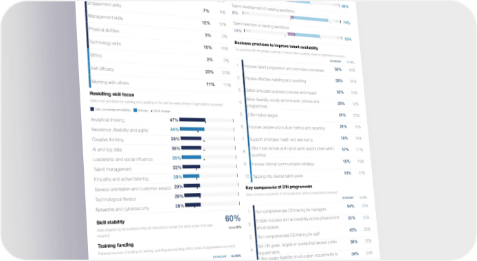 Economy Profile Working Age Population (Millions) / 2 Australia 17.8 6kill outlook :orkIorce strateJ\ outlook Core sRills Talent outlooR in 6kills needed to perform well in key, stable roles within the company (share of organizations surveyed) (xpected change in talent availability, development and retention in the next ıve years (share of organizations surveyed) Skills, knowledge and abilities $ttitudes ,mproving :orsening Global average Global average 2 2 2 Talent availability when hiring ECONOMY G/2%$/ -100% +100% 39% 38% 27% Cognitive skills Talent development of existing workforce -100% +100% 6% 74% 7% Engagement skills Talent retention of existing workforce 12% Management skills -100% +100% 14% 53% 3% Physical abilities )usiness practices to improve talent availability Top practices with the greatest potential to improve talent availability (share of organizations surveyed) 15% Technology skills ECONOMY G/2%$/ 2% Ethics 50% . Improve talent progression and promotion processes 23% Self-eĴcacy 38% . Provide eijective reskilling and upskilling 11 % Working with others 32% . Better articulate business purpose and impact 9esRilling sRill focus More diversity, eTuity and inclusion policies and 26% . 6kills most prioritized for reskilling and upskilling in the next ıve years (share of organizations surveyed) programmes Skills, knowledge and abilities $ttitudes Global average 24% . Oijer higher wages 47% Analytical thinking 21% . Improve people-and-culture metrics and reporting 44% Resilience, IJexibility and agility 19% . Support employee health and well-being 38% Creative thinking Oijer more remote and hybrid work opportunities within 36% 17% AI and big data . countries 35% Leadership and social inIJuence 15% . Improve internal-communication strategy 32% Talent management 13% 29% Tapping into diverse talent pools Empathy and active listening 29% Service orientation and customer service Key components of +,0 programmes 0ost common components of '(, programmes (share of organizations surveyed) 29% Technological literacy ECONOMY G/2%$/ 28% Networks and cybersecurity 54% . Run comprehensive DEI training for managers :Rill stability % Enable inclusion and accessibility across physical and 51% 6kills reTuired by the workforce that are expected to remain the same (share of all skills . Global % virtual spaces reTuired) 43% . Run comprehensive DEI training for staij Training funding 3referred sources of funding for training, upskilling and reskilling efforts (share of organizations surveyed) Set DEI goals, targets or Tuotas that exceed public 36% . reTuirements ECONOMY GLOBAL Oijer greater IJexibility on education reTuirements to 34% . 14% 16% Co-funding across the industry recruit from various backgrounds 26% 28% Free-of-cost training :hare of companies ^ith +,0 7rograms % (share of organizations surveyed) 33% 22% Funded by government Global % 93% 87% Funded by my organi]ation 24% 24% Public-private hybrid funding