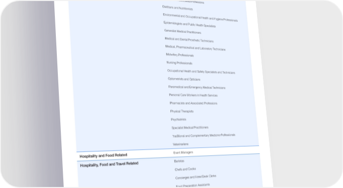 TABLE A3 Job taxonomy The occupational taxonomy was modiļ¬ed and extended from O*NET SOC. Job family Occupation Farming, Fishing, and Forestry Logging Equipment Operators Nursery and Greenhouse Workers Healthcare Practitioners and Technicians Audiologists and Speech Therapists Clinical and Counselling Psychologists Dentists and Associated Professions Dietitians and Nutritionists Environmental and Occupational Health and Hygiene Professionals Epidemiologists and Public Health Specialists Generalist Medical Practitioners Medical and Dental Prosthetic Technicians Medical, Pharmaceutical and Laboratory Technicians Midwifery Professionals Nursing Professionals Occupational Health and Safety Specialists and Technicians Optometrists and Opticians Paramedical and Emergency Medical Technicians Personal Care Workers in Health Services Pharmacists and Associated Professions Physical Therapists Psychiatrists Specialist Medical Practitioners Traditional and Complementary Medicine Professionals Veterinarians Hospitality and Food Related Event Managers Hospitality, Food and Travel Related Baristas Chefs and Cooks Concierges and Hotel Desk Clerks Food Preparation Assistants Food Service Counter Attendants Hotel and Restaurant Managers Tour and Travel Guides Waiters and Bartenders Installation and Maintenance Electronics and Telecommunications Installers and Repairers Home Appliance Installers and Repairers Future of Jobs Report 2023 71