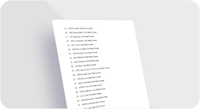 19. A3102 Swindon Safer Road Scheme 20. A186 Tyne and Wear Safer Road Scheme 21. A35 Weymouth Safer Road Scheme 22. A165 Scarborough Safer Road Scheme 23. A13 London Safer Road Scheme 24. A3056 Isle of Wight Safer Road Scheme 25. A5038 Liverpool Safer Road Scheme 26. A2010 Brighton Safer Road Scheme 27. A625 Derbyshire Safer Road Scheme 28. A35 Devon Safer Road Scheme 29. A6022 Ipswich South Yorkshire Safer Road Scheme 30. A586 Blackpool Safer Road Scheme 31. A1156 Ipswich Safer Road Scheme 32. A6042 Manchester Safer Road Scheme 33. A5183 Elstree Safer Road Scheme 34. A4030 Smethwick Safer Road Scheme 35. A25 Surrey Safer Road Scheme 36. A6130 Nottingham Safer Road Scheme 37. A4158 Oxford Safer Road Scheme 38. A104 Epping Safer Road Scheme 39. A113 Brentwood Safer Road Scheme 40. A19 Selby Safer Road Scheme 41. A2047 Portsmouth Safer Road Scheme 42. A23 Croydon Safer Road Scheme 43. A3025 Southampton Safer Road Scheme 44. A361 Devon Safer Road Scheme 45. A38 Devon Safer Road Scheme 46. A609 Nottingham Safer Road Scheme 47. A420 Oxford Safer Road Scheme 48. A579 Bolton Safer Road Scheme 49. A676 Bolton Safer Road Scheme 50. A4165 Oxford Safer Road Scheme 51. A432 Bristol Safer Road Scheme The Growth Plan 2022 36