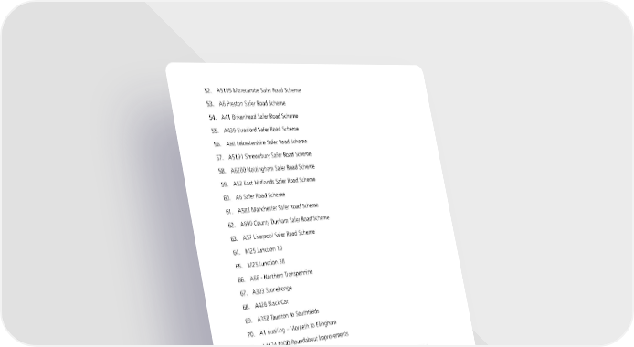 52. A5105 Morecambe Safer Road Scheme 53. A6 Preston Safer Road Scheme 54. A41 Birkenhead Safer Road Scheme 55. A439 Stratford Safer Road Scheme 56. A60 Leicestershire Safer Road Scheme 57. A5191 Shrewsbury Safer Road Scheme 58. A6200 Nottingham Safer Road Scheme 59. A52 East Midlands Safer Road Scheme 60. A6 Safer Road Scheme 61. A583 Manchester Safer Road Scheme 62. A690 County Durham Safer Road Scheme 63. A57 Liverpool Safer Road Scheme 64. M25 Junction 10 65. M25 Junction 28 66. A66 - Northern Transpennine 67. A303 Stonehenge 68. A428 Black Cat 69. A358 Taunton to Southfields 70. A1 dualling – Morpeth to Ellingham 71. A4174 MOD Roundabout Improvements 72. A22 Corridor Package (East Sussex) 73. A259 (King’s Road) Seafront, Highway Structures (‘Arches’) Renewal Programme 74. A374/A386/A364 Plymouth MRN Phase 1 75. A38 North Somerset (formerly Bristol Airport Access) 76. A4174 Ring Road Junction Improvements 77. A426/A4071 Avon Mill/Hunters Lane Improvements 78. A509 Isham Bypass 79. A582 South Ribble Western Distributor Upgrade 80. A595 Bothel Strategic Improvements 81. A650 Tong Street 82. A689 Corridor Improvements - Wynyard and Hartlepool 83. Brent Cross Highway Structures - Asset Renewal 84. Dawson’s Corner Junction and Stanningley Bypass The Growth Plan 2022 37