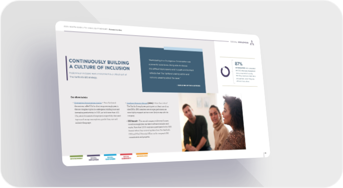 2021 SUSTAINABILITY HIGHLIGHT REPORT: Forward As One 16 SOCIAL: EMPLOYEES Fostering an inclusive work environment is a critical part of The Hartford’s DEI strategy. CONTINUOUSLY BUILDING A CULTURE OF INCLUSION Our efforts include: • Courageous Conversation Circles – These facilitated discussions, called C3s for short, empower employees to discuss complex topics in a safe space, building trust and increasing productivity In 2021, we held more than 400 C3s, where thousands of employees respectfully discussed topics such as age assumptions, gender bias, race and inclusive language • Employee Resource Groups (ERGs) – More than 50% of The Hartford’s employees participate in at least one of our nine ERGs ERG members are stronger performers, are more highly engaged and are more likely to stay with the company • DEI Summit – This annual company-wide event focuses on actions employees can take to advance inclusion and equity More than 2,000 employees participated in the 2021 Summit where they received updates from The Hartford’s CEO and Chief Diversity Officer on the company’s DEI commitments and progress – EMPLOYEE OF THE HARTFORD “Participating in a Courageous Conversation was a powerful experience. Being able to discuss this difficult topic openly and in a safe environment reflects that The Hartford is taking action and not only speaking about the issue.” OF EMPLOYEES who completed our 2021 employee engagement survey responded favorably that they could voice their ideas and opinions, even if they are different from others. 87 %