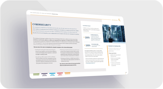 2021 SUSTAINABILITY HIGHLIGHT REPORT: Forward As One GOVERNANCE 35 We recognize the importance of managing cybersecurity risks. We gain awareness and support from senior leaders through governance practices including but not limited to providing cybersecurity updates to the Board of Directors and senior executives, establishing and leveraging an Executive Privacy and Security Council, and integrating cyber-related efforts into broader enterprise risk management practices. CYBERSECURITY The cybersecurity landscape is rapidly evolving with new and emerging threats and our cybersecurity teams are proactively monitoring our environment, adapting our defenses and implementing new capabilities Our defense strategy uses multiple security measures to protect the integrity of the company’s information The strategy aligns to the National Institute of Standards and Technology (NIST) Cyber Security Framework requirements for financial services companies providing preventative, detective and responsive measures that collectively protect the company Here are some of the ways we strengthen the company’s enterprise-wide cybersecurity program: • Actively participating with industry-wide information sharing forums, regularly monitoring threat intelligence sources and leveraging industry expertise to understand and adapt to emerging threats • Strengthening defenses against malicious software; advancing identity and access management practices; and enhancing network security monitoring, data loss prevention capabilities, data backup and recovery, and third-party security management processes • Maintaining comprehensive data security policies and systems that are assessed and tested at least annually Our program is evaluated annually by an independent external third-party auditing firm, including technical and red-team reviews to assess and test our defenses • Developing and testing our detailed response plan to ensure timely and accurate resolution in the event of a cybersecurity incident The collective results of these risk assessment activities inform our cybersecurity program priorities. CUSTOMER PRIVACY In addition to testing our systems, employees also receive training on how to protect data and maintain customer privacy: If an employee identifies a privacy or security incident, they’re directed to report it through an escalation process detailed in our Code of Ethics and Business Conduct We have a dedicated team with a robust process in place to handle consumer privacy right requests Additional information regarding the risks associated with customer privacy and cybersecurity, and how we manage those risks, is available on pages 32 and 98, respectively, of The Hartford's 2021 10-K OF EMPLOYEE EMAILS are governed under a data classification standard to identify and protect personally confidential information and highly restricted documents. OF OUR EMPLOYEES receive annual privacy and security training. 100% 100% Assessing Our Compliance Risk We routinely conduct compliance risk assessments across the company's business areas. Primary goals include: • Identifying the most significant compliance risks. • Performing analysis to detect, prevent and remediate compliance gaps. • Creating and implementing action plans for continuous improvement.