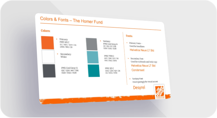 Colors & Fonts – The Homer Fund Colors: Fonts: § Primary: § Tertiary: § Primary Fonts - PMS 165 C PMS Cool Gray 8 Used for headlines 0C / 74M / 100Y / 0K 0C / 0M / 0Y / 37K 249R / 99G / 2B 153R / 153G / 153B Helvetica Neue LT Std § Secondary: PMS 7709 C White 60C / 13M / 25Y / 0K § Secondary Font - 97R / 176G / 187B Used for subheads and body copy Helvetica Neue LT Std PMS Cool Gray 11 PMS 321 C 63C / 52M / 44Y / 33K 100C / 21M / 42Y / 2K Condensed 102R / 102G / 102B 0R / 140G / 149B § Tertiary Font – Used sparingly for visual accent Desyrel 27