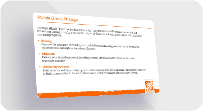 Atlanta Giving Strategy Through Atlanta-based nonprofit partnerships, The Foundation will continue to invest in our hometown, aiming to make a significant impact in the areas of housing, education and community outreach programs. § Housing Improve the spectrum of housing, from safe/affordable housing access to home ownership, maintenance and neighborhood beautification. § Education Elevate educational opportunities to help ensure a foundation for career success and economic mobility. § Community Outreach Build capacity and impactful programs for local nonprofits offering unique and tailored services to their communities in the wake of a disaster,to deliver aid when communities need it. 17