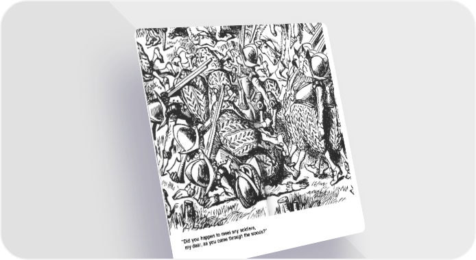 "Did you happen to meet any soldiers, my dear, as you came through the woods?"