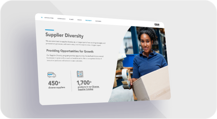 Supplier Diversity We are committed to supplier diversity as an integral part of our sourcing strategies and procurement processes, and continuously look for ways to make a bigger impact. Providing Opportunities for Growth Our Supplier Diversity program provides opportunities for small and diverse-owned businesses to grow and succeed and enables us to offer an exceptional choice of innovative products and services to our customers. 450 + diverse suppliers 1,700 + products in our Diverse Supplier Catalog 38. INTRODUCTION GOVERNANCE PLANET PEOPLE PROSPERITY SASB INDEX 38. INTRODUCTION GOVERNANCE PLANET PEOPLE PROSPERITY SASB INDEX
