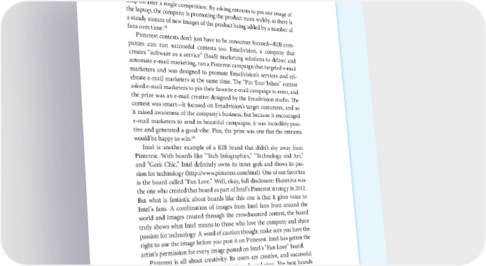 THE POWER OF THE PLATFORM: VISUAL STORYTELLING ON SOCIAL NETWORKS 67 drop off after a single competition. By asking entrants to pin one image of the laptop, the company is promoting the product more widely, as there is a steady stream of new images of the product being added by a number of fans over time.28 Pinterest contests don’t just have to be consumer focused—B2B com- panies can run successful contests too. Emailvision, a company that creates “software as a service” (SaaS) marketing solutions to deliver and automate e-mail marketing, ran a Pinterest campaign that targeted e-mail marketers and was designed to promote Emailvision’s services and cel- ebrate e-mail marketers at the same time. The “Pin Your Inbox” contest asked e-mail marketers to pin their favorite e-mail campaign to enter, and the prize was an e-mail creative designed by the Emailvision studio. The contest was smart—it focused on Emailvision’s target customers, and so it raised awareness of the company’s business, but because it encouraged e-mail marketers to send in beautiful campaigns, it was incredibly posi- tive and generated a good vibe. Plus, the prize was one that the entrants would be happy to win.29 Intel is another example of a B2B brand that didn’t shy away from Pinterest. With boards like “Tech Infographics,” “Technology and Art,” and “Geek Chic,” Intel definitely owns its inner geek and shows its pas- sion for technology (http://www.pinterest.com/intel). One of our favorites is the board called “Fan Love.” Well, okay, full disclosure: Ekaterina was the one who created that board as part of Intel’s Pinterest strategy in 2012. But what is fantastic about boards like this one is that it gives voice to Intel’s fans. A combination of images from Intel fans from around the world and images created through the crowdsourced contest, the board truly shows what Intel means to those who love the company and share passion for technology. A word of caution though: make sure you have the right to use the image before you post it on Pinterest. Intel has gotten the artist’s permission for every image posted on Intel’s “Fan Love” board. Pinterest is all about creativity. Its users are creative, and successful brands are innovative with ideas for boards and pins. The best brands on Pinterest are the ones that keep content fresh and topical, that