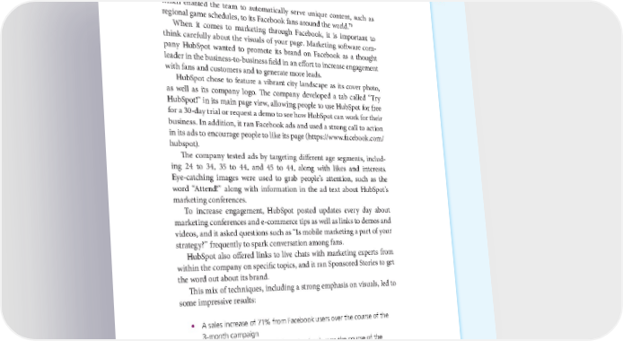 THE POWER OF THE PLATFORM: VISUAL STORYTELLING ON SOCIAL NETWORKS 83 which enabled the team to automatically serve unique content, such as 70 regional game schedules, to its Facebook fans around the world. When it comes to marketing through Facebook, it is important to think carefully about the visuals of your page. Marketing software com- pany HubSpot wanted to promote its brand on Facebook as a thought leader in the business-to-business field in an effort to increase engagement with fans and customers and to generate more leads. HubSpot chose to feature a vibrant city landscape as its cover photo, as well as its company logo. The company developed a tab called “Try HubSpot!” in its main page view, allowing people to use HubSpot for free for a 30-day trial or request a demo to see how HubSpot can work for their business. In addition, it ran Facebook ads and used a strong call to action in its ads to encourage people to like its page (https://www.facebook.com/ hubspot). The company tested ads by targeting different age segments, includ- ing 24 to 34, 35 to 44, and 45 to 44, along with likes and interests. Eye-catching images were used to grab people’s attention, such as the word “Attend!” along with information in the ad text about HubSpot’s marketing conferences. To increase engagement, HubSpot posted updates every day about marketing conferences and e-commerce tips as well as links to demos and videos, and it asked questions such as “Is mobile marketing a part of your strategy?” frequently to spark conversation among fans. HubSpot also offered links to live chats with marketing experts from within the company on specific topics, and it ran Sponsored Stories to get the word out about its brand. This mix of techniques, including a strong emphasis on visuals, led to some impressive results: • A sales increase of 71% from Facebook users over the course of the 3-month campaign • An increase in ROI of 15% from Facebook over the course of the campaign