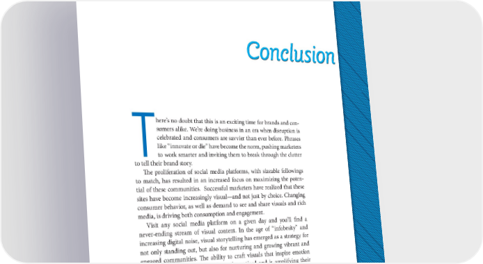 Conclusion here’s no doubt that this is an exciting time for brands and con- sumers alike. We’re doing business in an era when disruption is celebrated and consumers are savvier than ever before. Phrases like “innovate or die” have become the norm, pushing marketers Tto work smarter and inviting them to break through the clutter to tell their brand story. The proliferation of social media platforms, with sizeable followings to match, has resulted in an increased focus on maximizing the poten- tial of these communities. Successful marketers have realized that these sites have become increasingly visual—and not just by choice. Changing consumer behavior, as well as demand to see and share visuals and rich media, is driving both consumption and engagement. Visit any social media platform on a given day and you’ll find a never-ending stream of visual content. In the age of “infobesity” and increasing digital noise, visual storytelling has emerged as a strategy for not only standing out, but also for nurturing and growing vibrant and engaged communities. The ability to craft visuals that inspire emotion and action is helping companies to be noticed and is amplifying their stories through those communities. Consumers don’t necessarily go to 195
