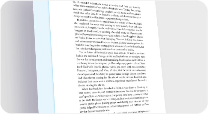 10 THE POWER OF VISUAL STORYTELLING on, like-minded individuals always seemed to find their way into the online communities that best reflected their interests. The key then, as it is now, was to identify what brings people to a social media platform, under- stand what value they derive from the platform, and determine how your company could fit within those engagement best practices. In addition to community engagement, the activity on these platforms also reinforced that users were looking for ways to easily share and orga- nize content, imagery, visuals, and videos. From following your favorite bloggers on LiveJournal, to curating a branded profile on Myspace com- plete with your favorite songs and music videos, or building photo albums on Flickr, it’s no surprise that the saying “Content Is King” was born— and subsequently overused for years to come. Content has always been the hook for inspiring action or engagement across social media channels, but the rules have changed as platforms have continued to evolve. The evolution of Facebook’s layout from 2004 to 2013 offers a unique look at the continued changes social media platforms are taking to pave the way for visual content and storytelling. Facebook has evolved from a text-heavy format favoring user profiles and group pages to a vibrant News Feed filled with colorful photos, videos, and more. With newcomers like Pinterest, Instagram, and Vine, it’s clear that Facebook users also crave clean layouts and the ability to quickly scroll through content in order to find what they’re looking for. The rise of mobile users on Facebook also indicates that users want a seamless experience regardless of the device they’re viewing the site on. When Facebook first launched in 2004, it was simply a directory of user names, interests, and contact information. You had to navigate to a user’s profile to learn more about that person or to leave a comment on his or her Wall. The layout was text heavy, and the most prominent image was a user’s profile photo. Joining groups and sharing your interests on your profile helped Facebook users to foster engagement and cultivate an iden- tity for themselves on the site. Facebook took first steps toward a more visual experience on September 5, 2006, with the News Feed and the Mini-Feed. The News Feed was visible