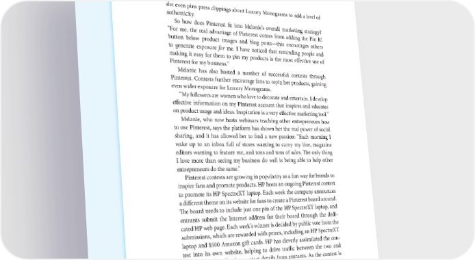 66 THE POWER OF VISUAL STORYTELLING she even pins press clippings about Luxury Monograms to add a level of authenticity. So how does Pinterest fit into Melanie’s overall marketing strategy? “For me, the real advantage of Pinterest comes from adding the Pin It! button below product images and blog posts—this encourages others to generate exposure for me. I have noticed that reminding people and making it easy for them to pin my products is the most effective use of Pinterest for my business.” Melanie has also hosted a number of successful contests through Pinterest. Contests further encourage fans to repin her products, gaining even wider exposure for Luxury Monograms. “My followers are women who love to decorate and entertain. I develop effective information on my Pinterest account that inspires and educates on product usage and ideas. Inspiration is a very effective marketing tool.” Melanie, who now hosts webinars teaching other entrepreneurs how to use Pinterest, says the platform has shown her the real power of social sharing, and it has allowed her to find a new passion: “Each morning I wake up to an inbox full of stores wanting to carry my line, magazine editors wanting to feature me, and tons and tons of sales. The only thing I love more than seeing my business do well is being able to help other entrepreneurs do the same.” Pinterest contests are growing in popularity as a fun way for brands to inspire fans and promote products. HP hosts an ongoing Pinterest contest to promote its HP SpectreXT laptop. Each week the company announces a different theme on its website for fans to create a Pinterest board around. The board needs to include just one pin of the HP SpectreXT laptop, and entrants submit the Internet address for their board through the dedi- cated HP web page. Each week’s winner is decided by public vote from the submissions, which are rewarded with prizes, including an HP SpectreXT laptop and $500 Amazon gift cards. HP has cleverly assimilated the con- test into its own website, helping to drive traffic between the two and simultaneously collecting contact details from entrants. As the contest is ongoing, HP ensures that consumer engagement remains high and doesn’t