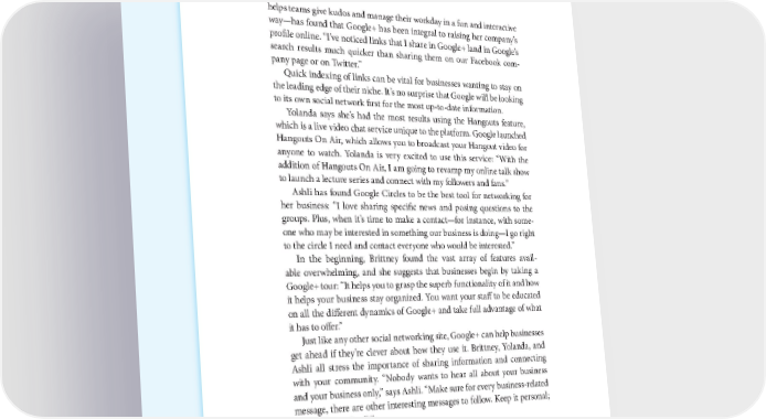 120 THE POWER OF VISUAL STORYTELLING helps teams give kudos and manage their workday in a fun and interactive way—has found that Google+ has been integral to raising her company’s profile online. “I’ve noticed links that I share in Google+ land in Google’s search results much quicker than sharing them on our Facebook com- pany page or on Twitter.” Quick indexing of links can be vital for businesses wanting to stay on the leading edge of their niche. It’s no surprise that Google will be looking to its own social network first for the most up-to-date information. Yolanda says she’s had the most results using the Hangouts feature, which is a live video chat service unique to the platform. Google launched Hangouts On Air, which allows you to broadcast your Hangout video for anyone to watch. Yolanda is very excited to use this service: “With the addition of Hangouts On Air, I am going to revamp my online talk show to launch a lecture series and connect with my followers and fans.” Ashli has found Google Circles to be the best tool for networking for her business: “I love sharing specific news and posing questions to the groups. Plus, when it’s time to make a contact—for instance, with some- one who may be interested in something our business is doing—I go right to the circle I need and contact everyone who would be interested.” In the beginning, Brittney found the vast array of features avail- able overwhelming, and she suggests that businesses begin by taking a Google+ tour: “It helps you to grasp the superb functionality of it and how it helps your business stay organized. You want your staff to be educated on all the different dynamics of Google+ and take full advantage of what it has to offer.” Just like any other social networking site, Google+ can help businesses get ahead if they’re clever about how they use it. Brittney, Yolanda, and Ashli all stress the importance of sharing information and connecting with your community. “Nobody wants to hear all about your business and your business only,” says Ashli. “Make sure for every business-related message, there are other interesting messages to follow. Keep it personal; 165 keep it interesting.”