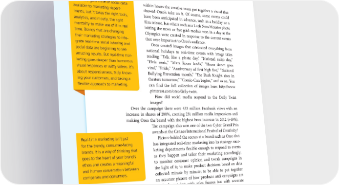 178 THE POWER OF VISUAL STORYTELLING There is a gold mine of social data within hours the creative team put together a visual that available to marketing depart- showed Oreo’s take on it. Of course, some events could ments, but it takes the right tools, have been anticipated in advance, such as a holiday or a analytics, and mostly, the right film release, but others such as a Loch Ness Monster photo mentality to make use of it in real hitting the news or five gold medals won in a day at the time. Brands that are changing Olympics were created in response to the current events their marketing strategies to inte- that were important to Oreo’s audience. grate real-time social listening and Oreo created images that celebrated everything from social data are beginning to see national holidays to real-time events with image titles amazing results. But real-time mar- reading “Talk like a pirate day,” “National radio day,” keting goes deeper than humorous “Elvis week,” “Mars Rover lands,” “Horse dance goes visual responses or witty videos. It’s viral,” “Pride,” “Anniversary of first high five,” “National about responsiveness, truly know- Bullying Prevention month,” “The Dark Knight rises in ing your customers, and taking a theaters tomorrow,” “Comic-Con begins,” and so on. You flexible approach to marketing. can find the full collection of images here: http://www .pinterest.com/oreo/daily-twist. How did social media respond to the Daily Twist images? Over the campaign there were 433 million Facebook views with an increase in shares of 280%, creating 231 million media impressions and making Oreo the brand with the highest buzz increase in 2012 (+49%). The campaign also won one of the two Cyber Grand Prix 1 awards at the Cannes International Festival of Creativity. Real-time marketing isn’t just Picture behind the scenes at a brand such as Oreo that for the trendy, consumer-facing has integrated real-time marketing into its strategy: mar- brands. It is a way of thinking that keting departments flexible enough to respond to events goes to the heart of your brand’s as they happen and tailor their marketing accordingly; ethos and creates a meaningful to monitor customer opinion and tweak campaigns in and human conversation between the light of it; to make product decisions based on data companies and consumers. collected minute by minute; to be able to put together an accurate picture of how products and campaigns are received—not just with sales figures but with accurate social media data from actual or potential customers.