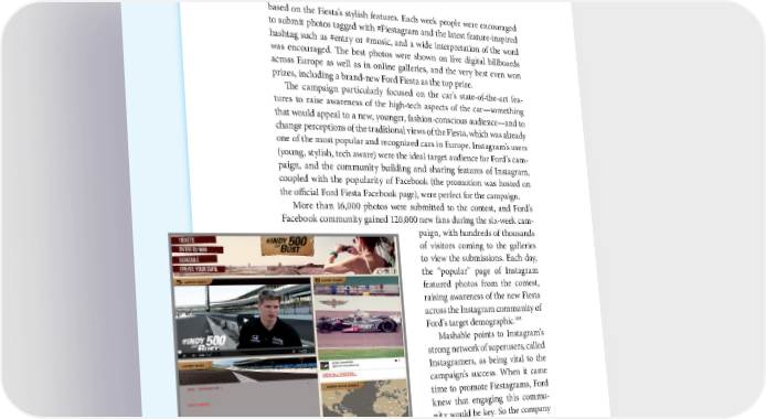 98 THE POWER OF VISUAL STORYTELLING based on the Fiesta’s stylish features. Each week people were encouraged to submit photos tagged with #Fiestagram and the latest feature-inspired hashtag such as #entry or #music, and a wide interpretation of the word was encouraged. The best photos were shown on live digital billboards across Europe as well as in online galleries, and the very best even won prizes, including a brand-new Ford Fiesta as the top prize. The campaign particularly focused on the car’s state-of-the-art fea- tures to raise awareness of the high-tech aspects of the car—something that would appeal to a new, younger, fashion-conscious audience—and to change perceptions of the traditional views of the Fiesta, which was already one of the most popular and recognized cars in Europe. Instagram’s users (young, stylish, tech aware) were the ideal target audience for Ford’s cam- paign, and the community building and sharing features of Instagram, coupled with the popularity of Facebook (the promotion was hosted on the official Ford Fiesta Facebook page), were perfect for the campaign. More than 16,000 photos were submitted to the contest, and Ford’s Facebook community gained 120,000 new fans during the six-week cam- paign, with hundreds of thousands of visitors coming to the galleries to view the submissions. Each day, the “popular” page of Instagram featured photos from the contest, raising awareness of the new Fiesta across the Instagram community of 105 Ford’s target demographic. Mashable points to Instagram’s strong network of superusers, called Instagramers, as being vital to the campaign’s success. When it came time to promote Fiestagrams, Ford knew that engaging this commu- nity would be key. So the company reached out to Gonzalez, founder of