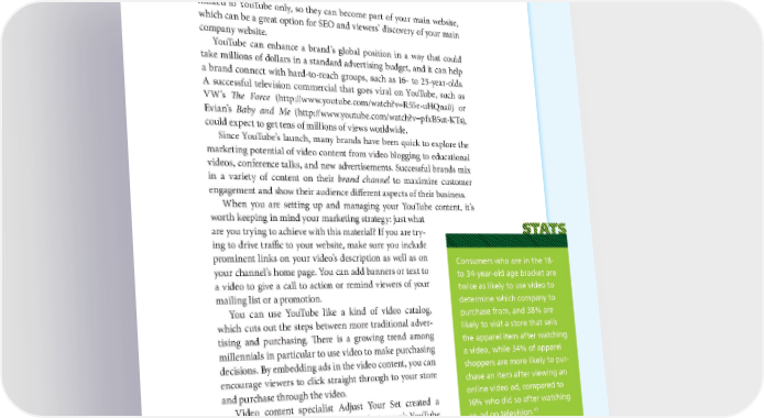 THE POWER OF THE PLATFORM: VISUAL STORYTELLING ON SOCIAL NETWORKS 71 limited to YouTube only, so they can become part of your main website, which can be a great option for SEO and viewers’ discovery of your main company website. YouTube can enhance a brand’s global position in a way that could take millions of dollars in a standard advertising budget, and it can help a brand connect with hard-to-reach groups, such as 16- to 25-year-olds. A successful television commercial that goes viral on YouTube, such as VW’s The Force (http://www.youtube.com/watch?v=R55e-uHQna0) or Evian’s Baby and Me (http://www.youtube.com/watch?v=pfxB5ut-KTs), could expect to get tens of millions of views worldwide. Since YouTube’s launch, many brands have been quick to explore the marketing potential of video content from video blogging to educational videos, conference talks, and new advertisements. Successful brands mix in a variety of content on their brand channel to maximize customer engagement and show their audience different aspects of their business. When you are setting up and managing your YouTube content, it’s worth keeping in mind your marketing strategy: just what are you trying to achieve with this material? If you are try- ing to drive traffic to your website, make sure you include prominent links on your video’s description as well as on Consumers who are in the 18- your channel’s home page. You can add banners or text to to 34-year-old age bracket are a video to give a call to action or remind viewers of your twice as likely to use video to mailing list or a promotion. determine which company to You can use YouTube like a kind of video catalog, purchase from, and 38% are which cuts out the steps between more traditional adver- likely to visit a store that sells tising and purchasing. There is a growing trend among the apparel item after watching millennials in particular to use video to make purchasing a video, while 34% of apparel decisions. By embedding ads in the video content, you can shoppers are more likely to pur- encourage viewers to click straight through to your store chase an item after viewing an and purchase through the video. online video ad, compared to Video content specialist Adjust Your Set created a 16% who did so after watching series of click-to-buy videos for lastminute.com’s YouTube an ad on television.47 channel, launched in the run-up to the holiday season.