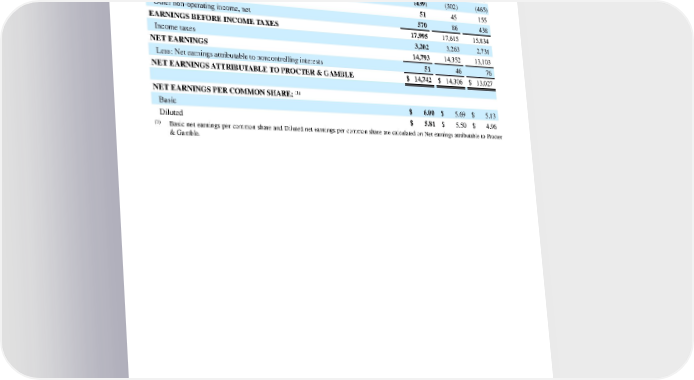 Consolidated Statements of Earnings Amounts in millions except per share amounts; Years ended June 30 2022 2021 2020 NET SALES $ 80,187 $ 76,118 $ 70,950 Cost of products sold 42,157 37,108 35,250 Selling, general and administrative expense 20,217 21,024 19,994 OPERATING INCOME 17,813 17,986 15,706 Interest expense (439) (502) (465) Interest income 51 45 155 Other non - operating income, net 570 86 438 EARNINGS BEFORE INCOME TAXES 17,995 17,615 15,834 Income taxes 3,202 3,263 2,731 NET EARNINGS 14,793 14,352 13,103 Less: Net earnings attributable to noncontrolling interests 51 46 76 NET EARNINGS ATTRIBUTABLE TO PROCTER & GAMBLE $ 14,742 $ 14,306 $ 13,027 NET EARNINGS PER COMMON SHARE: (1) Basic $ 6.00 $ 5.69 $ 5.13 Diluted $ 5.81 $ 5.50 $ 4.96 (1) Basic net earnings per common share and Diluted net earnings per common share are calculated on Net earnings attributable to Procter & Gamble. The Procter & Gamble Company 37 See accompanying Notes to Consolidated Financial Statements.