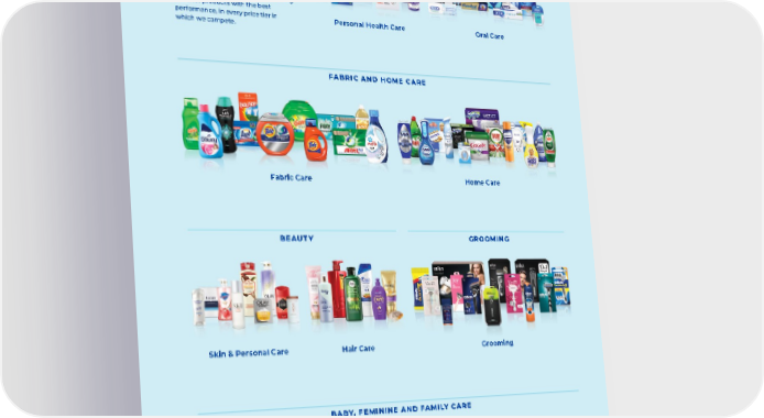 P&G’s Portfolio Ten Categories Organized in Five Operating Sectors P&G has a focused portfolio of daily- use products in categories where performance plays a significant role in brand choice. Our focus is on delivering superior products with the best performance, in every price tier in which we compete. HEALTH CARE Personal Health Care O ral Care FABRIC AND HOME CARE F abric Care H ome Care BEAUTY Skin & Personal Care Hair Care GROOMING G rooming BABY, FEMININE AND FAMILY CARE B aby Care Feminine Care Family Care