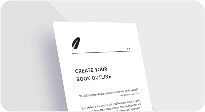 3.1 CrEATE yOUr BOOk OUTliNE “The skill of writing is to create a context in which other people can think.” —edwin SChloSSberg Your outline is the structure of your book, and thus incredibly important. If you start writing without a structure, the process will take forever, and the product will be haphazard and incomplete. Worse, having no outline often leads to not finishing your book at all. The outline is also your best defense against fear, anxiety, pro- crastination, and writer’s block. With good positioning and a good outline, the actual writing of the book becomes fairly easy. What I am about to teach is not what you learned about outlining in school. It is a somewhat unconventional way to approach it. But it’s the process we developed at Scribe to give our authors the best chance of actually getting their book done. What makes our outline different is we only intend it to trigger the proper ideas and concepts for each chapter, so when you sit down to write, you know what to focus on. CrEATE yOUr BOOk OUTliNE · 95
