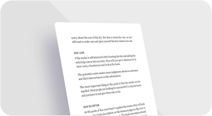 worry about the rest of this list. But that is rarely the case, so you still want to make sure and give yourself the best chance you can. BOOK COVER If the reader is still interested after hearing the title and taking the referring source into account, they will now go to Amazon (or in rarer cases, a bookstore) and look at the book. The potential reader makes more judgments about its relevance and their interest based on this information. The most important thing at this point is that the reader not be repelled. Most people are looking for reasons NOT to buy the book, and you have to not give them any so far. BOOK DESCRIPTION At this point, if the cover hasn’t repelled the reader, they will look next to the book description on the Amazon page (or flip over to the back of the book in a bookstore). The book description should give the reader a strong sense of what the book is about, making it interesting while not giving everything away. BLURBS If the reader still is interested, they will now look at endorsements (sometimes for a physical book, they will do this prior to reading the book description). Note that most readers look more closely at who the blurbs are from rather than what they say. They assume that the blurbs will be pos- itive, so they want to see what level of social status the blurber is, and whether it’s someone they know and respect. 446 · ThE SCriBE METhOD