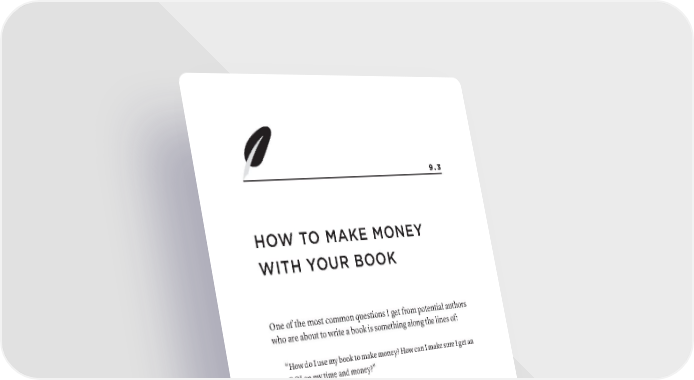 9.3 hOW TO MAkE MONEy WiTh yOUr BOOk One of the most common questions I get from potential authors who are about to write a book is something along the lines of: “How do I use my book to make money? How can I make sure I get an ROI on my time and money?” It’s a reasonable question. The bad news is you will probably not make (substantial) money by selling copies of your book. The good news: there are so many other ways you can make money with a book—and usually a lot more money than you’d make by focusing on selling copies. I’ll run through the most common ways, with examples for each. 1. CONSULTING SERVICES At Scribe, our largest client base is consultants. Once they reach a certain level of success, they can’t really go much higher without a hOW TO MAkE MONEy WiTh yOUr BOOk · 385