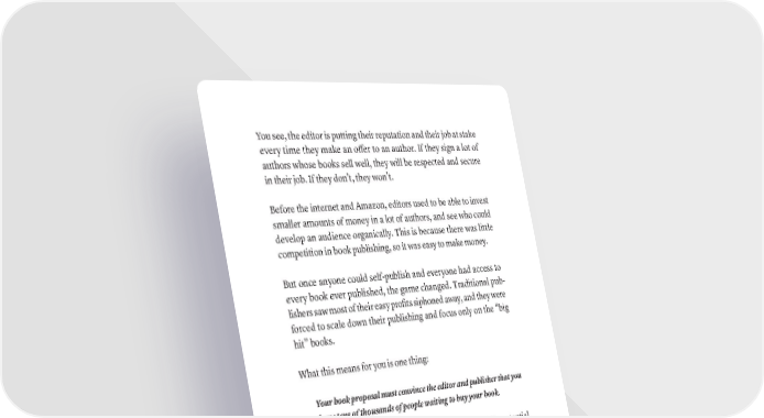 You see, the editor is putting their reputation and their job at stake every time they make an offer to an author. If they sign a lot of authors whose books sell well, they will be respected and secure in their job. If they don’t, they won’t. Before the internet and Amazon, editors used to be able to invest smaller amounts of money in a lot of authors, and see who could develop an audience organically. This is because there was little competition in book publishing, so it was easy to make money. But once anyone could self-publish and everyone had access to every book ever published, the game changed. Traditional pub- lishers saw most of their easy profits siphoned away, and they were forced to scale down their publishing and focus only on the “big hit” books. What this means for you is one thing: Your book proposal must convince the editor and publisher that you have tens of thousands of people waiting to buy your book. Many authors make the mistake of trying to argue that the potential market for the book is huge. That may even be true, but that’s not how editors look at it. Without an established platform, without a confirmed set of readers ready to buy the book, the risk for a tra- ditional publisher is usually too high. I’m not just saying this. Book agent Byrd Leavell says this (he’s repped several #1 New York Times bestselling authors who have sold tens of millions of books): Publishers aren’t buying anything that doesn’t come with a built-in audience that is waiting to buy it. They don’t take risks anymore, they don’t gamble on authors, they only want sure things. I won’t even take an author out unless they have an audience that can guarantee 20k pre-sales to them. hOW TO WriTE A NONfiCTiON BOOk PrOPOSAl (WiTh TEMPlATE) · 355