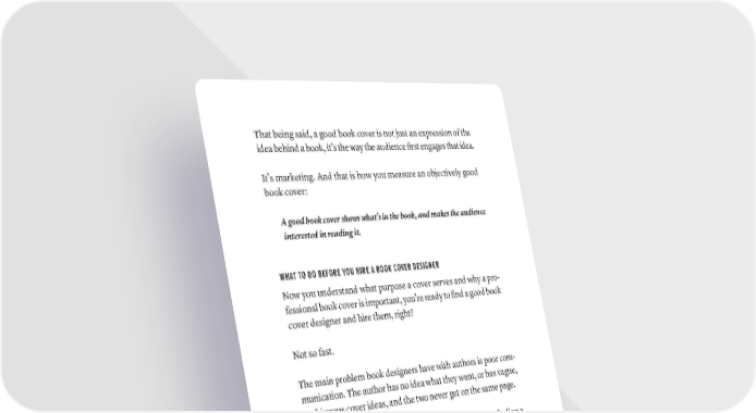 That being said, a good book cover is not just an expression of the idea behind a book, it’s the way the audience first engages that idea. It’s marketing. And that is how you measure an objectively good book cover: A good book cover shows what’s in the book, and makes the audience interested in reading it. WHAT TO DO BEFORE YOU HIRE A BOOK COVER DESIGNER Now you understand what purpose a cover serves and why a pro- fessional book cover is important, you’re ready to find a good book cover designer and hire them, right? Not so fast. The main problem book designers have with authors is poor com- munication. The author has no idea what they want, or has vague, ambiguous cover ideas, and the two never get on the same page. You can avoid this problem by doing some work prior to finding a book cover designer. Not only will this result in a better cover, it can save you a lot of money. 1. LOOK AT LOTS OF BOOK COVERS, BOTH IN YOUR FIELD AND OUT The first thing to do is get an idea of what other books in your field are like, and maybe get some ideas from them. Go to Amazon books and search in the category your book falls into. Search Pinterest for artsier titles if you’d like. If you want a classic, look to Bookcoverarchive.com for the best, most avant-garde titles. Once you spend some time looking at a lot of book covers in your genre, you’ll be shocked at how repetitive they are. That’s common. 282 · ThE SCriBE METhOD