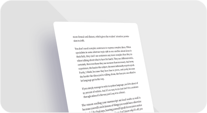 more formal and distant, which gives the readers’ attention permis- sion to drift. You don’t need complex sentences to express complex ideas. When specialists in some abstruse topic talk to one another about ideas in their field, they don’t use sentences any more complex than they do when talking about what to have for lunch. They use different words, certainly. But even those they use no more than necessary. And in my experience, the harder the subject, the more informally experts speak. Partly, I think, because they have less to prove, and partly because the harder the ideas you’re talking about, the less you can afford to let language get in the way. If you simply manage to write in spoken language, you’ll be ahead of 95 percent of writers. And it’s so easy to do: just don’t let a sentence through unless it’s the way you’d say it to a friend. The reason reading your manuscript out loud works so well is because you will catch dozens of things you would have otherwise missed. Like Paul says, hearing yourself speak forces you to notice bad or strange phrasings—even if you don’t know why it’s off, you know it’s off. STEP 1: READ IT OUT LOUD TO A PERSON If possible, read each chapter to a person. I know, that sounds awful and tedious, but reading to actual people forces you to really hear what is and is not working. It’s an incredible forcing function. If you can’t do that, then set up a microphone and record yourself as you read aloud. You can delete the recording afterward. All that matters is that you are reading it OUT LOUD. This is KEY to making this process work. 168 · ThE SCriBE METhOD