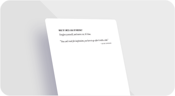 The Scribe Method by Tucker Max Page 131 Page 133WHAT IF I MISS A DAY OF WRITING? Forgive yourself, and move on. It’s fine. “You can’t wait for inspiration, you have to go after it with a club.” —JaCk london 132 · ThE SCriBE METhOD