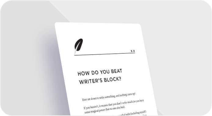 9.9 hOW DO yOU BEAT WriTEr’S BlOCk? Ever sat down to write something, and nothing came up? If you haven’t, it means that you don’t write much (or you have some magical power that no one else has). Every writer I’ve ever talked to or worked with (including myself) has dealt with writer’s block. In fact, some of the greatest writers of all time—Ralph Ellison, Harper Lee—battled with it for decades, and had it crush their careers (neither wrote a book other than their first). After decades of writing books professionally, and working with thousands of authors to help them through these issues, I have developed an approach to writer’s block that is different than most, and—if applied correctly—almost always works. WHAT IS WRITER’S BLOCK? The term “writer’s block” was created in the ’50s by a psychiatrist named Edmund Bergler, in a paper called “Does Writer’s Block Exist?” Bergler was from the Freudian school of psychoanalysis hOW DO yOU BEAT WriTEr’S BlOCk? · 431