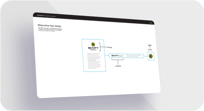Master Brand // 14 Responsive logo design. The Shyft Group logo is a shape-shifting logo that changes in size and complexity to accommodate and adapt to wherever it is placed. Full Logo Wordmark Symbol Responsive Logo Design