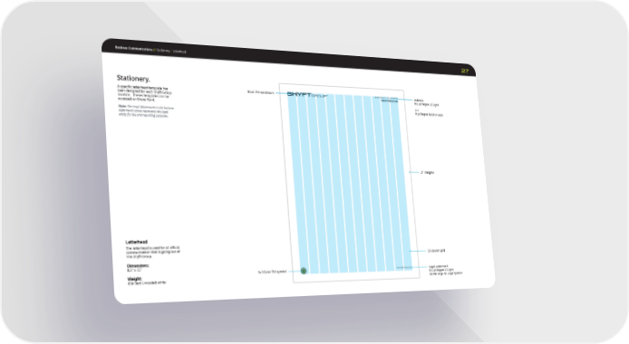 Business Communications // 27 Letterhead The letterhead is used for all official communication that is going out of The Shyft Group. Dimensions: 8.5" x 11" Weight: 65# Text Uncoated white Stationery. A specific letterhead template has been designed for each Shyft Group location. Theses templates can be accessed on Share Point. Note: The legal Watermark in the bottom right hand corner represents the legal entity for tax and reporting purposes. .5" Margins 12 column grid Legal watermark 8.5 pt Segoe UI Light Center align to Logo Symbol Address 8.5 pt Segoe UI Light Url 8 pt Segoe Bold all caps Full Color TM symbol Black TM wordmark Stationery / Letterhead