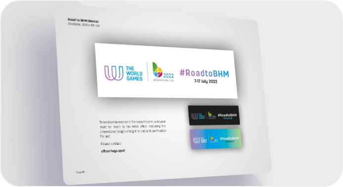 Road to BHM Banner Example: 250 x 80 cm To receive the electronic file ready for print, a request must be made to the IWGA office indicating the dimensions (length x height in cm) and justification for use. Please contact [email protected] Page 10