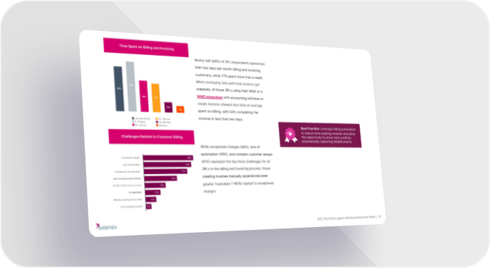 Nearly half (48%) of 3PL respondents spend less than two days per month billing and invoicing customers, while 17% spent more than a week. When overlaying data with how invoices get prepared, of those 3PLs using their WMS or a WMS integration with accounting software to create invoices showed less time on average spent on billing, with 64% completing the invoices in less than two days. Best Practice: Leverage billing automation to reduce time building invoices and seize the opportunity to drive more profit by automatically capturing billable events. While uncaptured charges (48%), lack of automation (46%), and complex customer setups (41%) represent the top three challenges for all 3PLs in the billing and invoicing process; those creating invoices manually experienced even greater frustration (~60%) related to uncaptured charges. 2022 Third-Party Logistics Warehouse Benchmark Report | 37