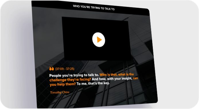 WHO YOU’RE TRYING TO TALK TO 1. Domestic & General started out over 100 years ago, ensuring cattle and sheep rights. So not long after the Titanic went down there was a need all of a sudden to have protection and insurance on your livestock. (37:09 - 37:25) People you're trying to talk to. Who is that, what is the challenge they're facing? And how, with your insight, can you help them? To me, that's the key. Timothy Chou