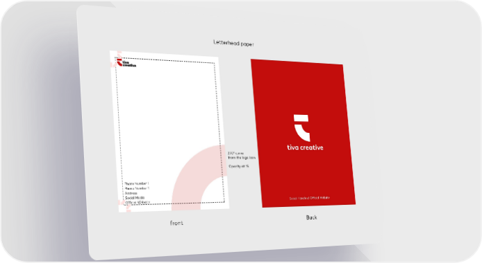270° curve from the logo icon Opacity at 15 Letterhead paper front Back Phone Number 1 Phone Number 1 Address Social Media Official Website Social Handles | Official Website tiva creative