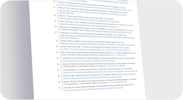 51. Qin, Kefan, Wei Ma, Changzheng Hu, Guobin Shuai and Wiebo Hu, “A Wireless Universal Brain-Machine Interface (BMI) System for Epileptic Diseases”, 2022 5th International Conference on Circuits, Systems and Simulation, 2022, pp. 156-160, https://doi.org/10.1109/ICCSS55260.2022.9802412. 52. Vattendahl Vidal, Gabriel, Matthew Rynes, Zachary Kelliher and Shikha Goodwin, “Review of Brain-Machine Interfaces Used in Neural Prosthetics with New Perspective on Somatosensory Feedback through Method of Signal Breakdown”, Scienti昀椀ca (Cairo), 2016, https://doi.org/10.1155/2016/8956432. 53. Tang, Xin, Hao Shen, Siyan Zhao, Na Li, Jia Liu, “Flexible Brain–Computer Interfaces”, Nature Electronics, vol. 6, 2023, pp. 109-118. 54. Zhao, Siyuan, Xin Tang, Weiwen Tian, Sebastian Partarrieu et al., “Tracking neural activity from the same cells during the entire adult life of mice”, Nature Neuroscience, vol. 26, 2023, pp. 696-710, https://www.nature.com/articles/s41593-023-01267-x. 55. BioSpace, WISE Completes Enrolment in Pivotal Clinical Study of Novel Neuro-Electrodes for Brain Monitoring [Press release], 23 January 2020, https://www.biospace.com/article/wise-completes-enrolment-in-pivotal-clinical-study-of- novel-neuro-electrodes-for-brain-monitoring/. 56. Holt, Kris, “FDA Clears Synchron’s Brain-Computer Interface Device for Human Trials”, Engadget, 28 July 2021, https://www.engadget.com/fda-brain-computer-interface-clinical-trial-synchron-stentrode-190232289.html?guccounter=1. 57. Rooks, Timothy, “Data Centers Keep Energy Use Steady Despite Big Growth”, Deutsche Welle, 24 January 2022, https://www.dw.com/en/data-centers-energy-consumption-steady-despite-big-growth-because-of-increasing- ef昀椀ciency/a-60444548. 58. Biba, Erin, “The city where the internet warms people’s homes”, BBC, 13 October 2017, https://www.bbc.com/future/article/20171013-where-data-centres-store-info---and-heat-homes. 59. Evans, Richard and Jim Gao, “DeepMind AI Reduces Google Data Centre Cooling Bill by 40%”, Deep Mind, 20 July 2016, https://www.deepmind.com/blog/deepmind-ai-reduces-google-data-centre-cooling-bill-by-40. 60. Katal, Avita, Susheela Dahiya and Tanupriya Choudhury, “Energy Ef昀椀ciency in Cloud Computing Data Centers: A Survey on Software Technologies”, Cluster Computing, 2022, https://link.springer.com/article/10.1007/s10586-022-03713-0. 61. Flower, David, “How Machine Learning and Edge Computing Power Sustainability”, Forbes, 18 March 2022, https://www.forbes.com/sites/forbestechcouncil/2022/03/18/how-machine-learning-and-edge-computing-power-sustain ability/?sh=78055e4e5fab. 62. Simpson, Stephen, “Systems on a Chip Comes to the Data Center”, McKinsey Digital, 8 March 2022, https://www.mckinsey.com/capabilities/mckinsey-digital/our-insights/tech-forward/systems-on-a-chip-comes-to-the-data-center. 63. Barroso, Luiz and Urs Hölzle, “The Case for Energy-Proportional Computing”, Computer, vol. 40, no. 12, 2007, pp. 33-37, https://www.researchgate.net/publication/2962080_The_Case_for_Energy-Proportional_Computing. 64. Malik, Yashpal Singh, Shubhankar Sircar, Sudipta Bhat, Mohd Ikram Ansari et al., “How Arti昀椀cial Intelligence May Help the Covid-19 Pandemic: Pitfalls and Lessons for the Future”, Medical Virology, vol. 31, no. 5, 2021, pp. 1-11. 65. “Preparing for a Future Pandemic with Arti昀椀cial Intelligence”, Paci昀椀c Northwest National Laboratory, 21 September 2021, https://www.pnnl.gov/news-media/preparing-future-pandemic-arti昀椀cial-intelligence. 66. Mahajan, Abhishek, Tanvi Vaidya, Anurag Gupta, Swapnil Rane and Sudeep Gupta, “Arti昀椀cial Intelligence in Healthcare i n Developing Nations”, Cancer Research, Statistics, and Treatment, vol. 2, no. 2, 2019, pp. 182-189. 67. “Comparing Nations on Timeliness and Coordination of Health Care”, The Commonwealth Fund, 4 October 2021, https://www.commonwealthfund.org/publications/surveys/2021/oct/comparing-nations-timeliness-and-coordination-health-care. 68. Johnson, Angela, “Reducing the wait for care: Case study”, HRR Reporter, 9 December 2019, https://www.hrreporter. com/focus-areas/compensation-and-bene昀椀ts/reducing-the-wait-for-care-case-study/323823. 69. Mahajan, Abhishek, Tanvi Vaidya, Anurag Gupta, Swapnil Rane and Sudeep Gupta, “Arti昀椀cial Intelligence in Healthcare in Developing Nations”, Cancer Research, Statistics, and Treatment, vol. 2, no. 2, 2019, pp. 182-189. 70. Federation of European Academies of Medicine, International Sharing of Personal Health Data for Research, 2021, https://www.feam.eu/wp-content/uploads/International-Health-Data-Transfer_2021_web.pdf. Top 10 Emerging Technologies of 2023 34
