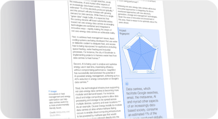 Olga Fink Professor of Intelligent Maintenance and Operations Systems, EPFL Andrew Maynard Professor of Advanced Technology Transitions, Arizona State University While the Earth is indisputably facing a worsening as energy-proportional computing, in which environmental crisis, increasing reliance on data computers use energy proportional to the amount may not seem to play much of a role. Yet data of work being performed.63 centres, which facilitate Google searches, email, the metaverse, AI and myriad other aspects of Achieving net-zero-energy data centres will involve an increasingly data-based society, consume an innovative approaches to integrating the above 57 estimated 1% of the electricity produced globally, mentioned approaches with new electricity and this amount will only increase with growing generation, storage and management technologies. demand for data services. While there is no single Given the wave of innovation and investment in “green data” magic bullet, it is expected that this area, there is reason to be optimistic about the the coming decade will boast substantial strides years ahead. toward net-zero-energy data centres as emerging technologies are combined and integrated in innovative ways – rapidly making the dream of Impact net-zero-energy data centres an achievable reality. 昀椀ngerprint People First, to address heat-management issues, liquid cooling systems are being developed that use water or dielectric coolant to dissipate heat, and excess Planet heat is being repurposed for applications including Equity space heating, water heating and industrial processes. For instance, the city of Stockholm is implementing projects to harness waste heat from data centres to heat homes.58 Second, AI is being used to analyse and optimize energy use in real-time, maximizing ef昀椀ciency without compromising performance. DeepMind Prosperity has successfully demonstrated the potential of Industry AI-powered energy management, achieving up to a 40% reduction in energy consumption at Google’s data centres.59 Third, the technological infrastructure supporting Image: net-zero-energy data centres is becoming more Data centres, which Innovations in heat modular and demand-based. For instance, facilitate Google searches, management and energy cloud and edge computing systems allow data optimization can help processing and storage to be spread across email, the metaverse, AI data centres switch to 60,61 a more environmentally multiple devices, systems and even locations. and myriad other aspects friendly future. As an example, Crusoe Energy installs its modular of an increasingly data- Credit: Midjourney and data centres at sites where methane 昀氀aring Studio Miko. occurs to enable cloud computing infrastructure based society, consume Prompt (abbreviated): to be powered by methane gas that would an estimated 1% of the “Futuristic data centre otherwise have been released directly into the with nature inside and atmosphere. These and other prefabricated units electricity produced globally, surrounding”. can be easily deployed, expanded or relocated, making the dream of Read more: allowing data centre operators to optimize energy Discover expert analysis use and adapt to their companies’ changing net-zero-energy data centres related to sustainable needs. Additional innovations in software and an achievable reality. computing on the Strategic hardware include novel computing architectures 62 Intelligence Platform. like systems on a chip; and optimizations such Top 10 Emerging Technologies of 2023 25