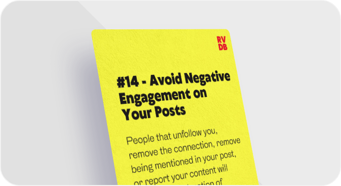 RV DB #14 - Avoid Negative Engagement on Your Posts People that unfollow you, remove the connection, remove being mentioned in your post, or report your content will stop the acceleration of growth of your post.