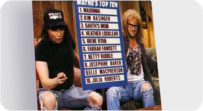 - They're a somewhat "safe" way to comment on controversial topics. If you want web content that speaks to really topical matters, but are afraid to get too "heavy," a Top 10 List of, say, key takeaways from a recently overturned bill, can be a softer way to broach the topic than some long diatribe. (Or a cutting way to attack the matter head-on, if you are more willing to do so.) Plus, it can help your readers better comprehend the topic...and help their friends better comprehend...and them their friends... (you see what I'm going for here, right?)