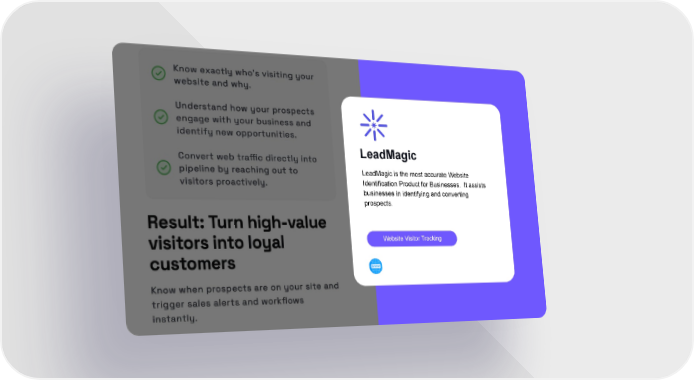 LeadMagic LeadMagic is the most accurate Website Identification Product for Businesses. It assists businesses in identifying and converting prospects. Website Visitor Tracking