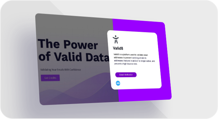 Valid8 Valid8 is a platform used to validate email addresses to prevent sending emails to addresses that are invalid or no longer active, and prevent a high bounce rate. Email Verification