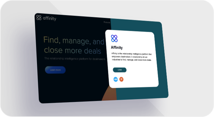 Affinity Affinity is the relationship intelligence platform that empowers dealmakers in relationship-driven industries to find, manage, and close more deals. CRM