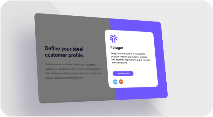 Forager Forager scours the web in real-time to find prospects matching your customer personas - then adds them into your CRM to give your sales team superpowers. Lead Generation