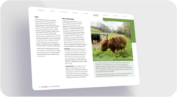 CEO Message Overview Team Members Customers Community Environment Supply Chain Governance SASB Index 33 Tractor Supply 2021 Sustainability Report Water Over the past few years, we have expanded customer offerings to include self-serve pet washing stations at Tractor Supply stores, grooming services at Petsense stores and Garden Centers at a limited number of Tractor Supply stores. To help manage the resulting increased demand for water, we engage in several company- wide initiatives to reduce our water usage, including the use of low-flow devices, which require 25% less water than regular flow fixtures. When we identify high-usage stores via our bill pay platform, we work with the store to identify the source of the high-water use and work to remediate the situation. Implementing more timely feedback to stores has resulted in a reduction in water waste. In areas of high or extremely high-water stress such as Arizona and New Mexico, we are working with the local water utility to establish baselines and further our efforts to use water efficiently and responsibly. Waste and Recycling At Tractor Supply, we know that we must be good stewards of the land and of our natural resources so that our children and future generations will have the same opportunities we enjoy today. Our sustainability program is built on a foundation of compliance with environmental laws and regulations that are monitored under our Environmental Management Program. We know a sustainable future is about thinking beyond compliance. That’s why we’re always looking for ways to become more efficient, eliminate waste, reduce our impact on the environment, and also provide our customers with easy ways to reduce their environmental impact. The following waste and recycling data applies to our store footprint only. Solid Waste: Solid waste is produced as part of our normal business operations. We work with a third-party for most disposal and recycling efforts, ensuring the provider adheres to all regulations and the highest standards for all disposal and recycling. We continue to evaluate waste data capture and engage with our solid waste service providers to understand opportunities to increase diversion rates. Hazardous Waste: Tractor Supply sells a wide variety of consumer products. Some of the products we sell, when returned by customers or accidently spilled, may become hazardous waste. We developed a hazardous waste management program to ensure unsalable products are properly managed and disposed of in accordance with Recently, Tractor Supply became a member of The Sustainability Consortium. Through membership in The Sustainability Consortium, we join more than 100 corporations, nonprofits and academic institutions to help transform the consumer goods industry to deliver more sustainable consumer products. We have the opportunity to work collaboratively with The Sustainability Consortium’s members and partners to address sustainability issues across a product’s supply chain and lifecycle. This partnership will facilitate our understanding of social and environmental impacts in the supply chain and allow us to make progress on managing our Scope 3 impacts. The Sustainability Consortium